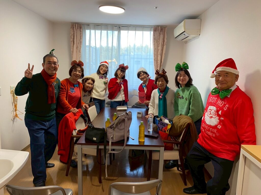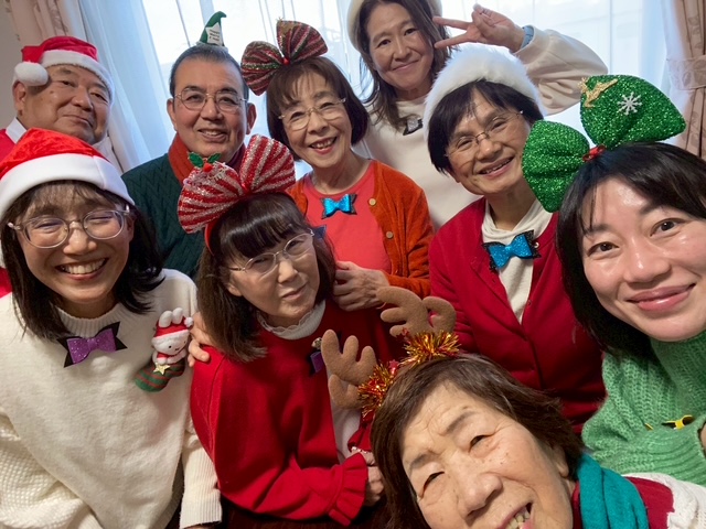 12月23日の午後、市内にある施設でクリスマスソングを披露しました。残念ながら歌の様子は写真に収められなかったのですが、終了後の控え室で…Say cheese!
